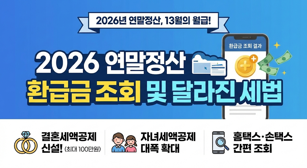 #연말정산 #환급금조회 #2026연말정산 #개정세법 #결혼세액공제 #자녀세액공제 #홈택스 #손택스 #13월의월급 #직장인세금