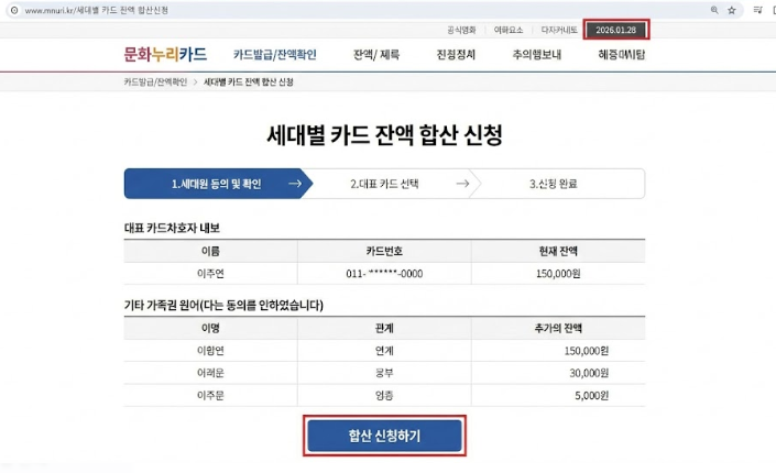 - 🔗 관련 링크: 문화누리카드 세대별 합산 신청 바로가기